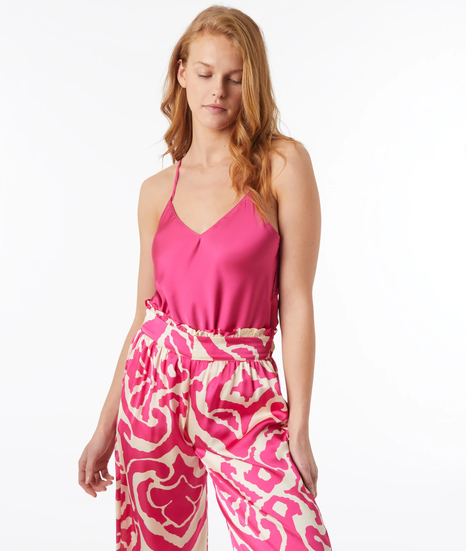 Délicatement satiné, ce caraco chic est muni de bretelles fines, d’un décolleté en V et dévoile un dos en dentelle fleurie. Coordonnez le au pantalon assorti pour créer votre pyjama parfait.