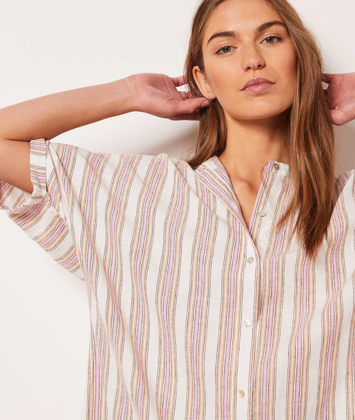 Incontournable de la saison, l’imprimé Toile de Jouy s’invite dans vos nuits. Légère et agréable à porter, elle est munie de manches courtes et d’une fermeture boutonnée.