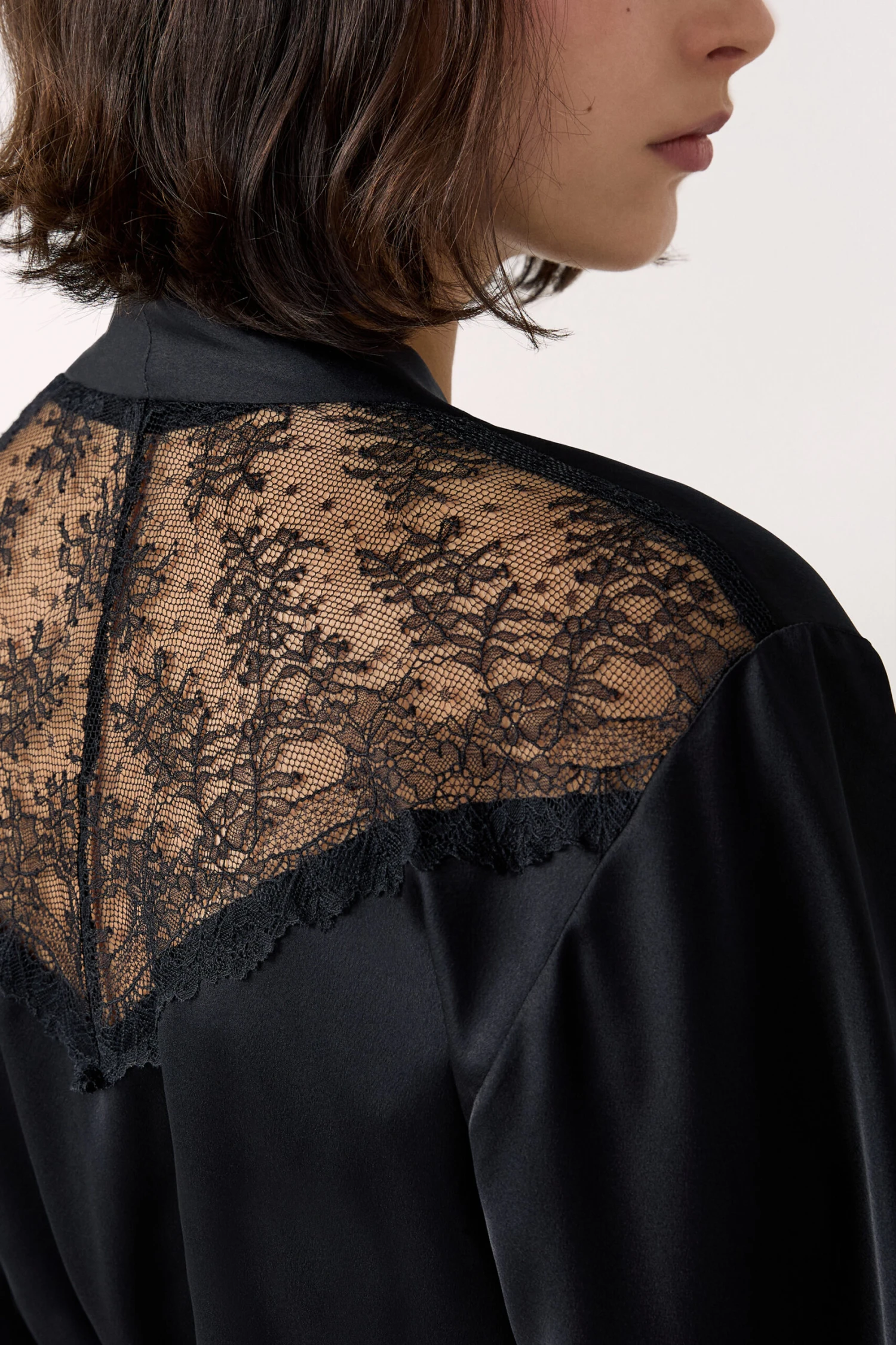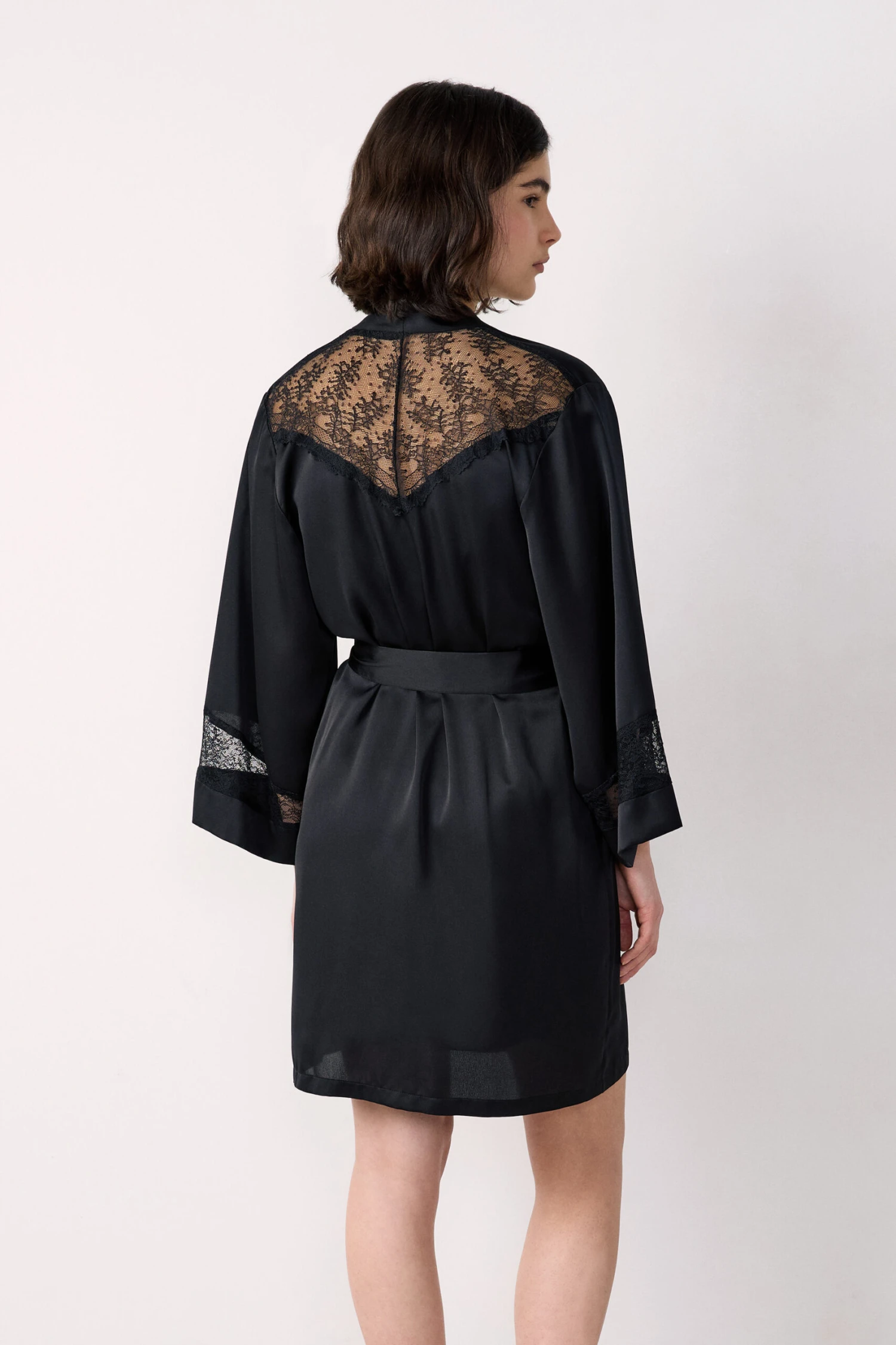 Ce déshabillé satiné, aux détails en dentelle dévoile la peau tout en douceur. Noué à la taille, il dessine vos courbes avec délicatesse et promet des nuits chics et élégantes.