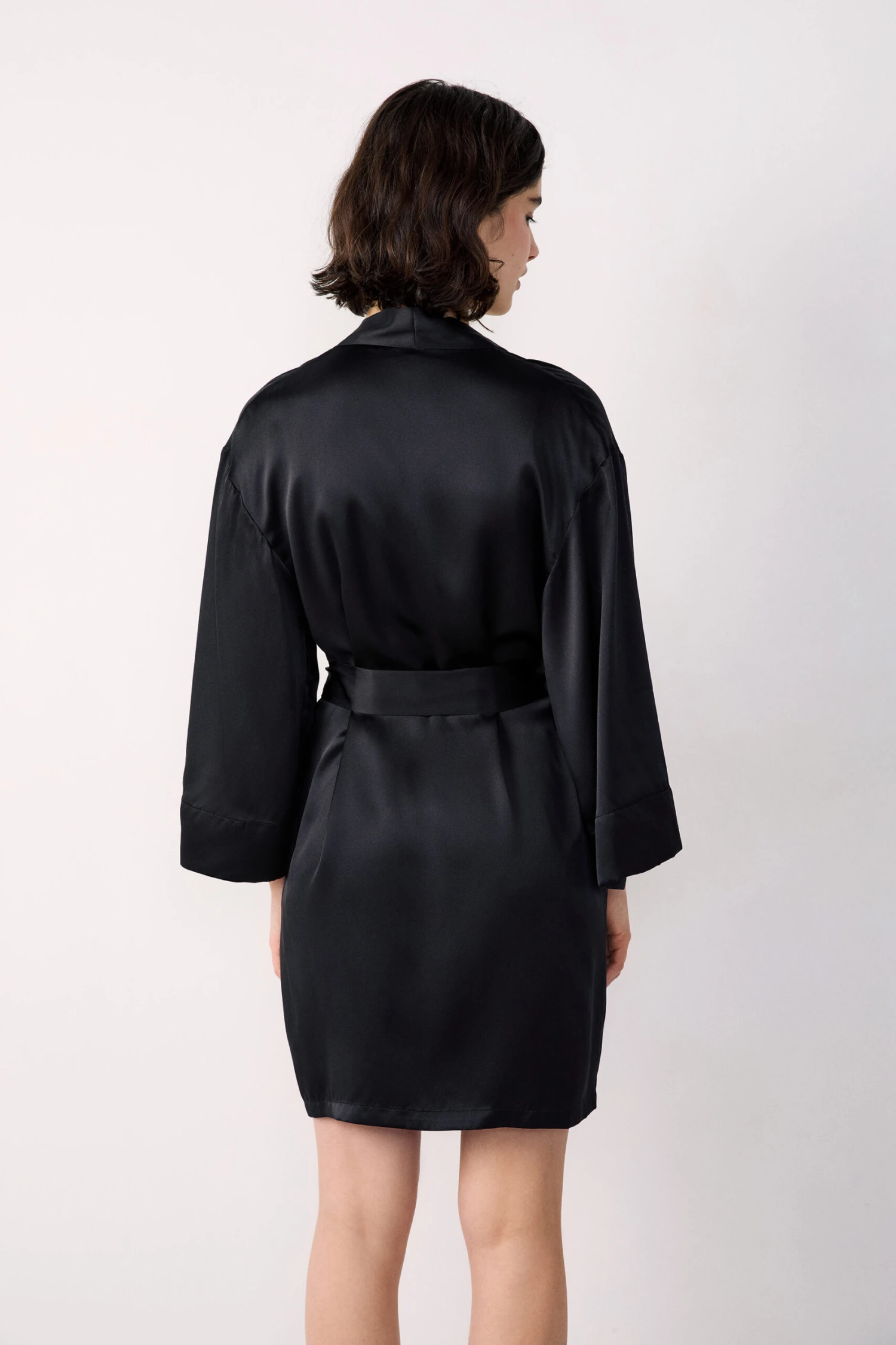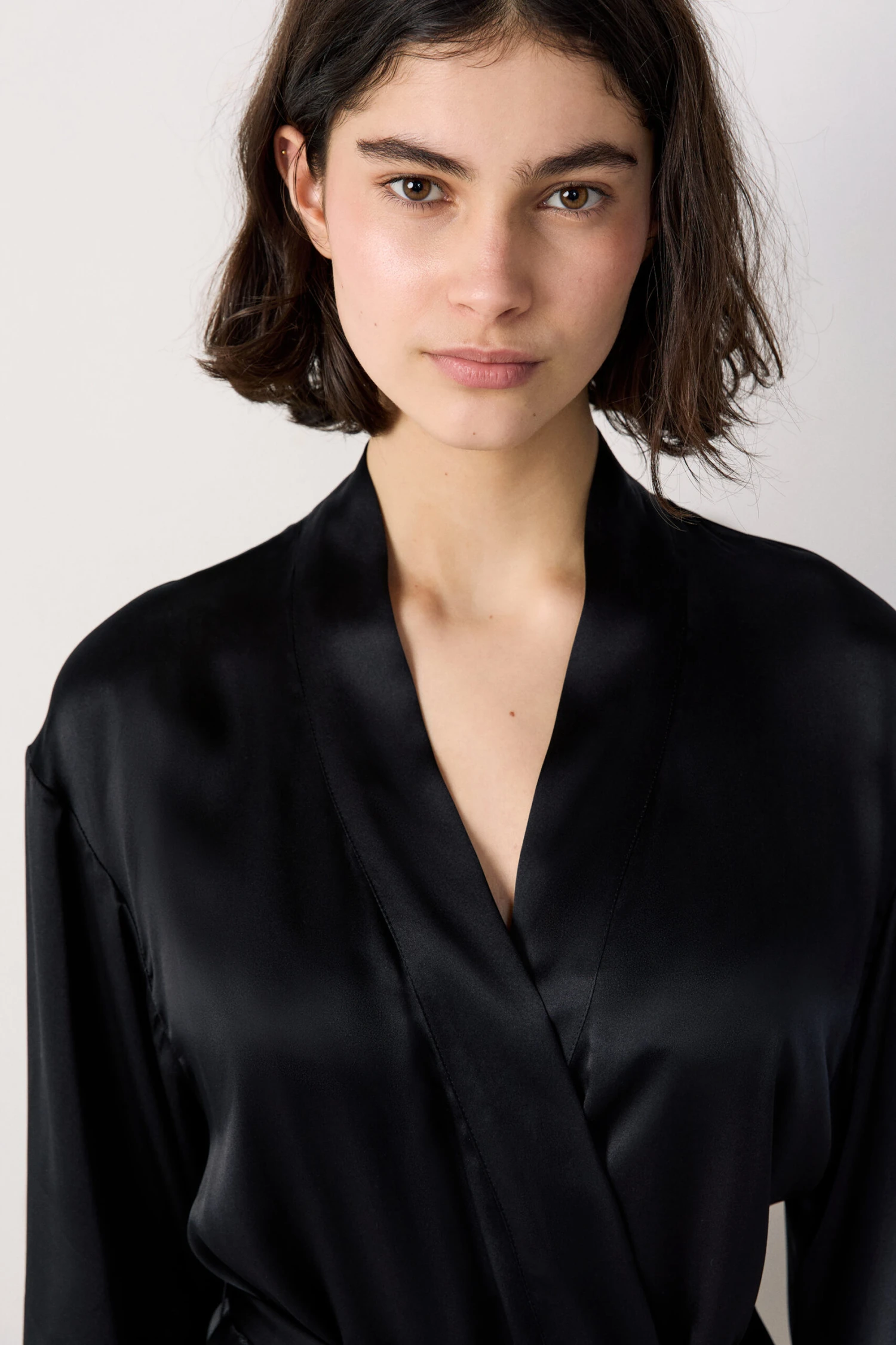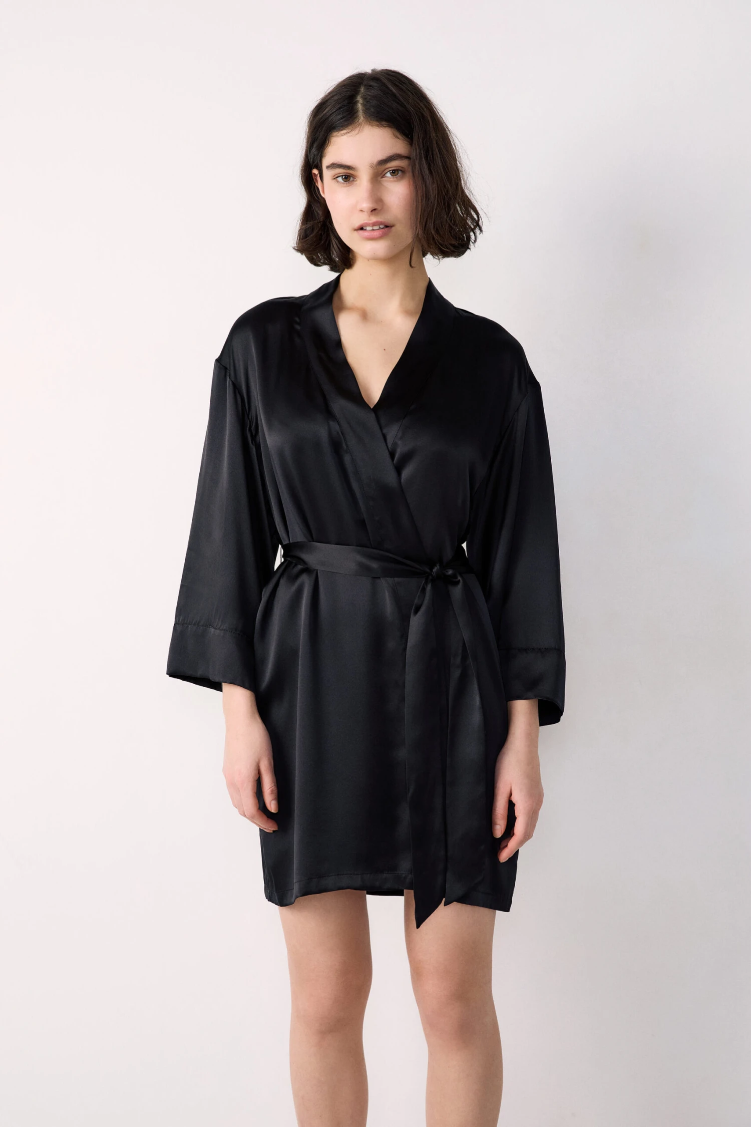 Doux et élégant, ce déshabillé en soie se glisse à la perfection par-dessus un total look assorti et promet des nuits légères.