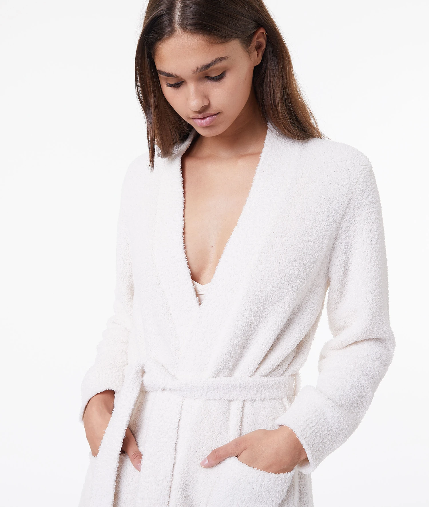 Emmitouflez-vous dans ce déshabillé tout doux, parfait pour des nuits douces. Manches longues et muni d’une ceinture à nouer à la taille, il vous réchauffera tout en douceur.