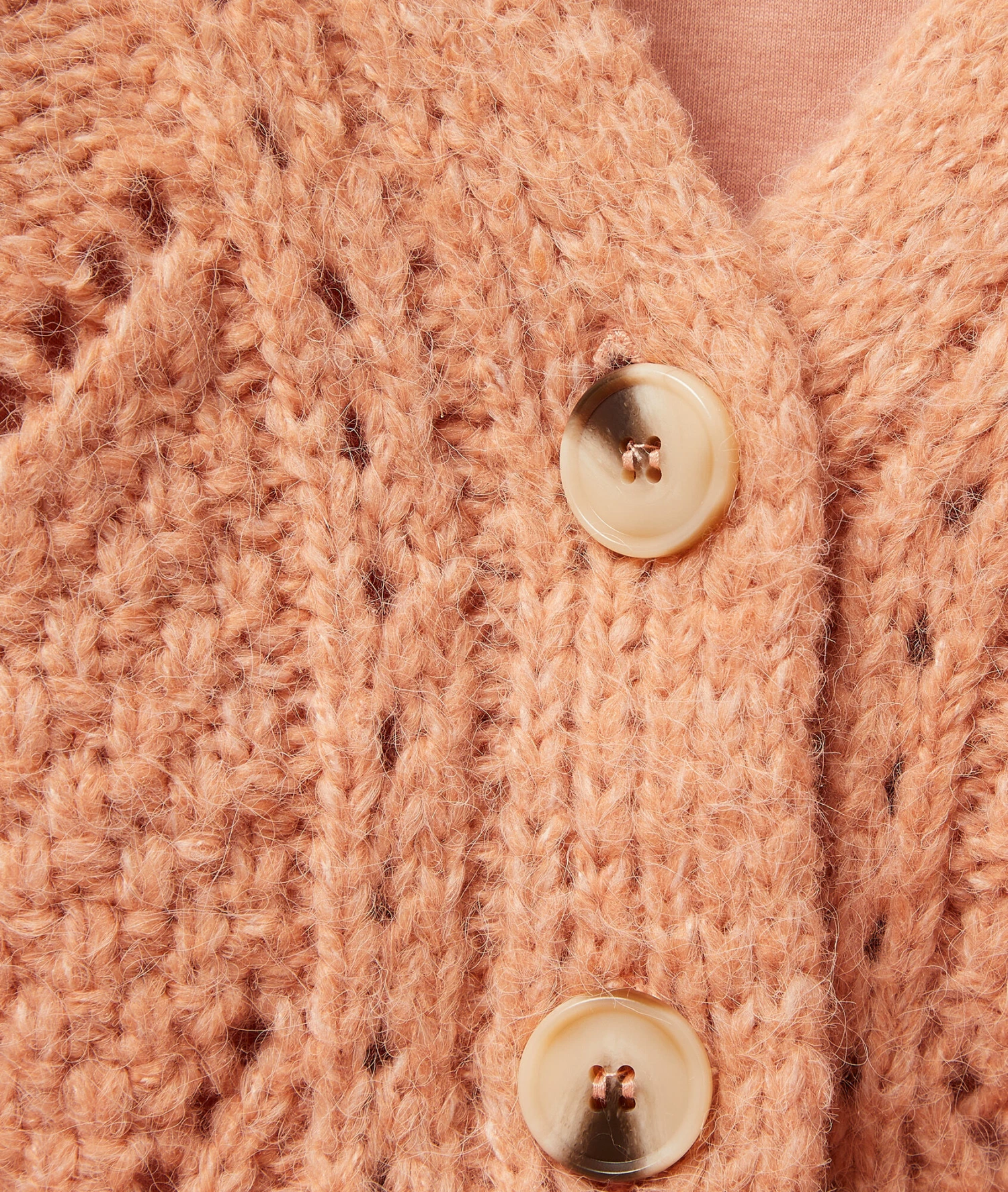 Un gilet en maille épaisse et moelleuse, pour cocooner ou pour se réchauffer en douceur ! Muni de manches longues et d’une fermeture boutonnée, il dévoile des motifs ajourés.