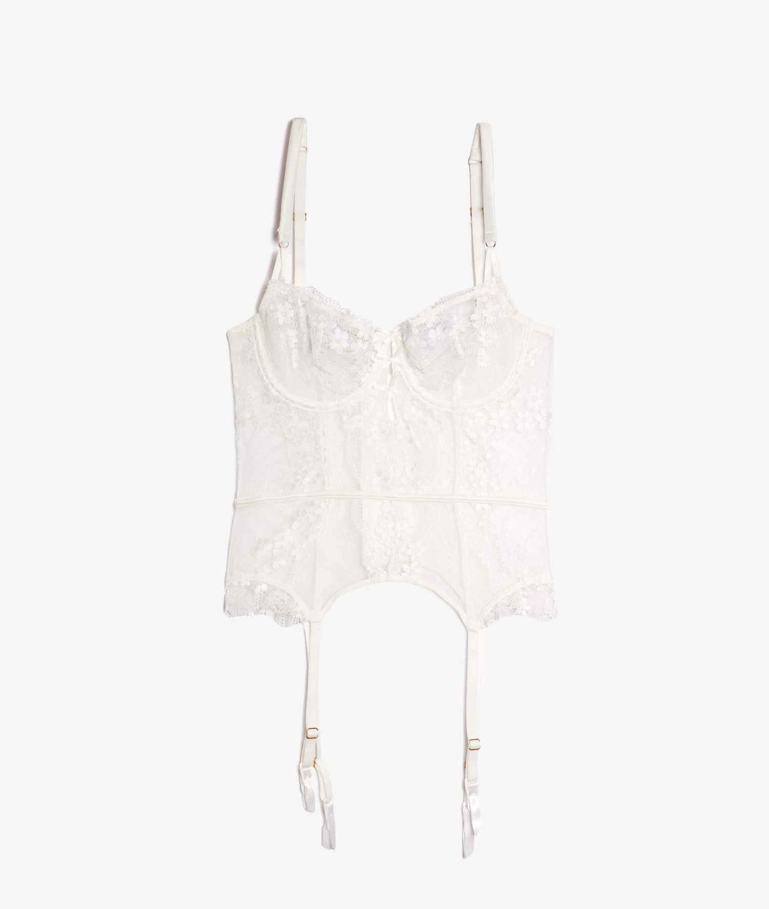 Ultra sexy, cette guêpière en tulle brodé dessine des motifs fleuris en transparence sur la peau, et souligne le décolleté avec délicatesse.