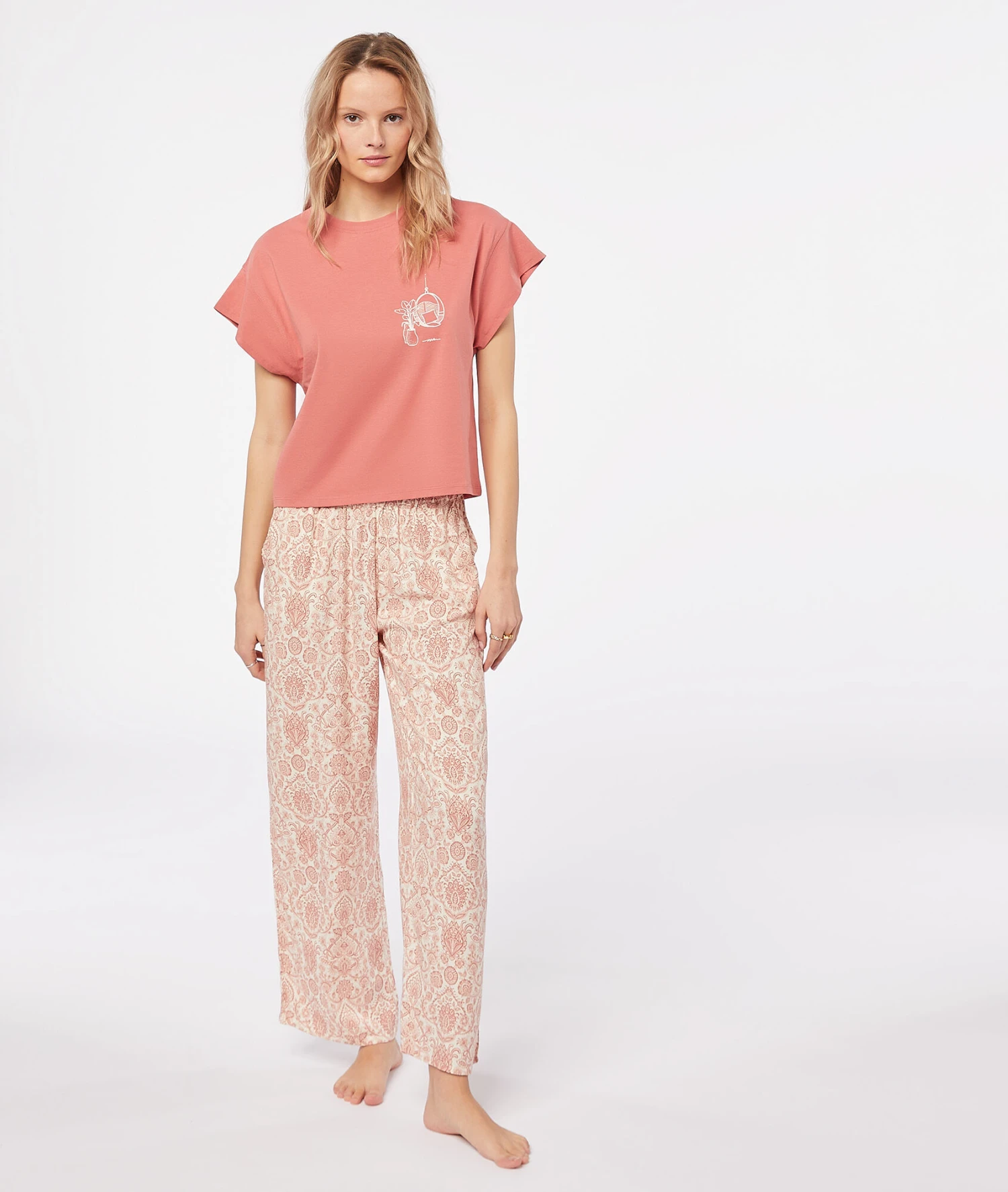 Fluide et léger, ce pantalon de pyjama dévoile un imprimé coup de cœur. Muni d’un élastique à la taille et de poches sur les côtés, il se coordonné à un top dans les mêmes teintes, pour un joli outfit de nuit.