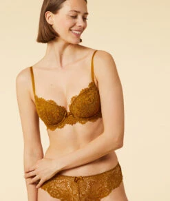 Un décolleté naturellement sublimé: les coques fines dévoilent un joli galbe entouré de dentelle florale.