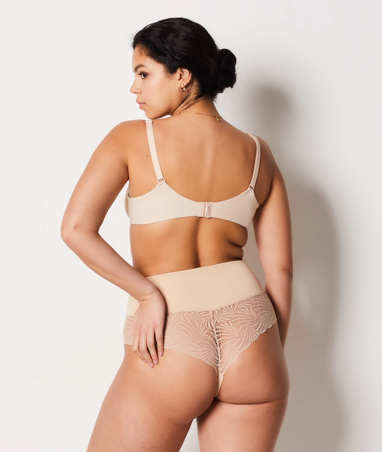Quand le sexy rencontre le confort tout en se liant à l’utile: ce tanga gainant offre un maintien médium à adopter au quotidien pour des courbes lissées.